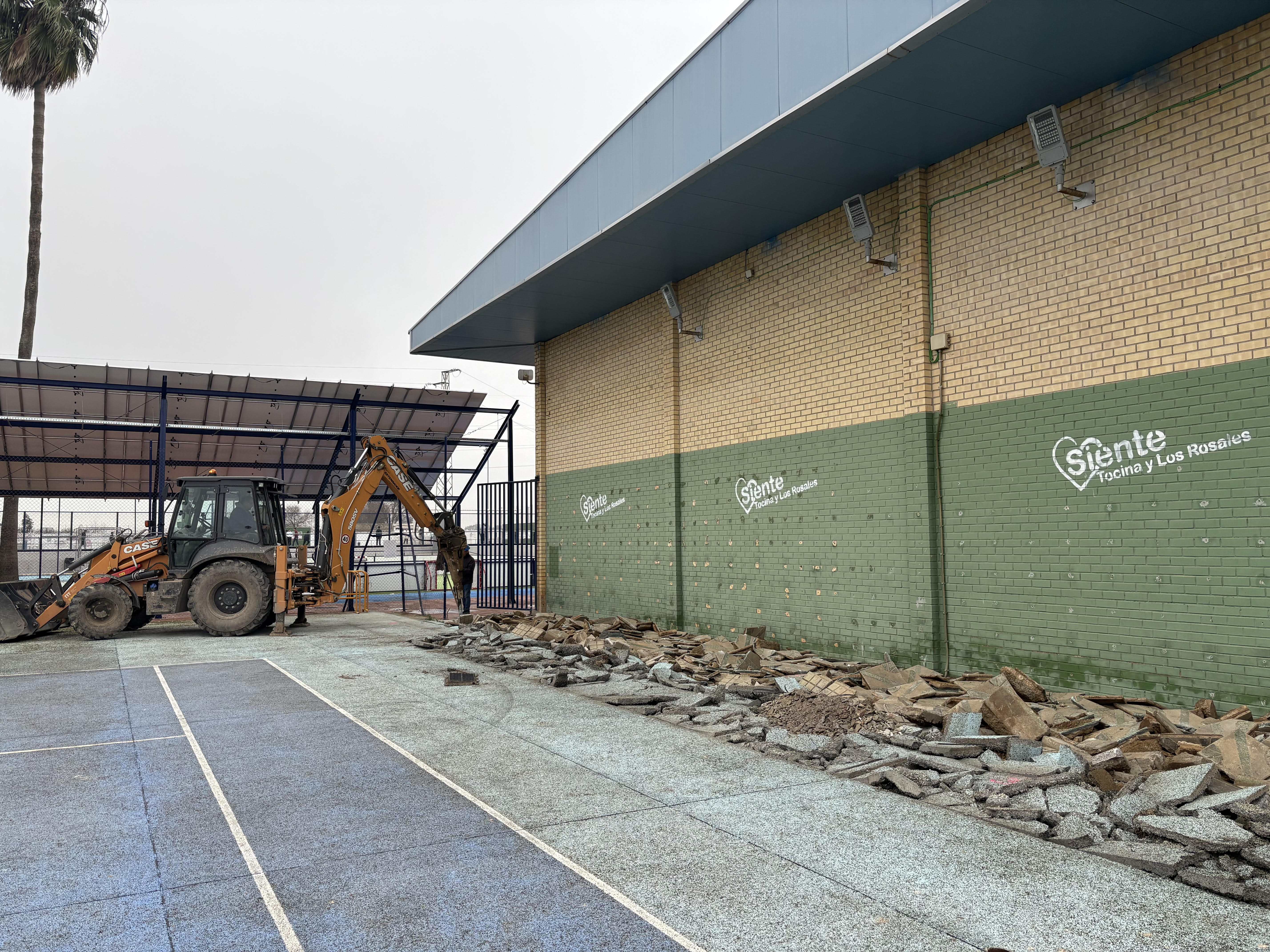 Ya se han demolido los vestuarios existentes hasta ahora, situados en la fachada norte del pabellón, debido a su mal estado estructural. Estas instalaciones presentan daños importantes en la cimentación que han provocado desplazamientos, grietas y desprendimientos, lo que hace inviable su reparación y obliga a su sustitución por motivos de seguridad.