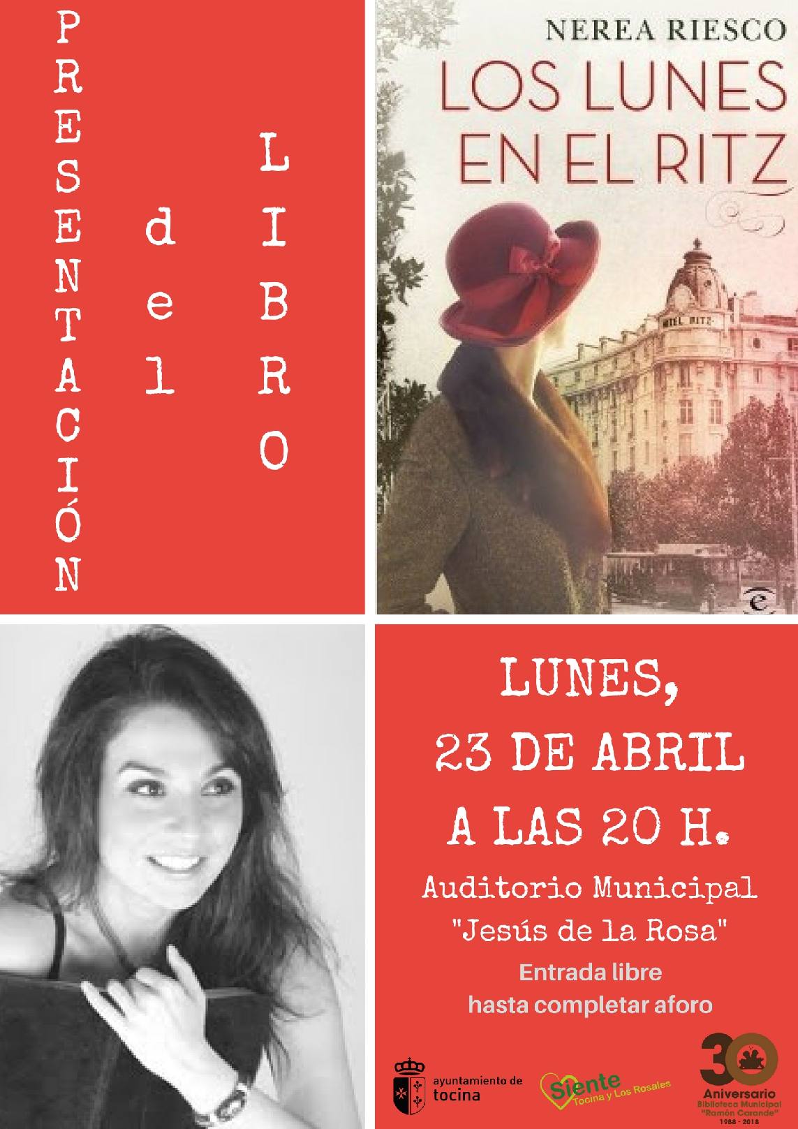 En el acto de presentación del día de hoy contará además con la presencia de la gran escritora y periodista Nerea Riesco, quién presentará su última novela “Los lunes en el Ritz”