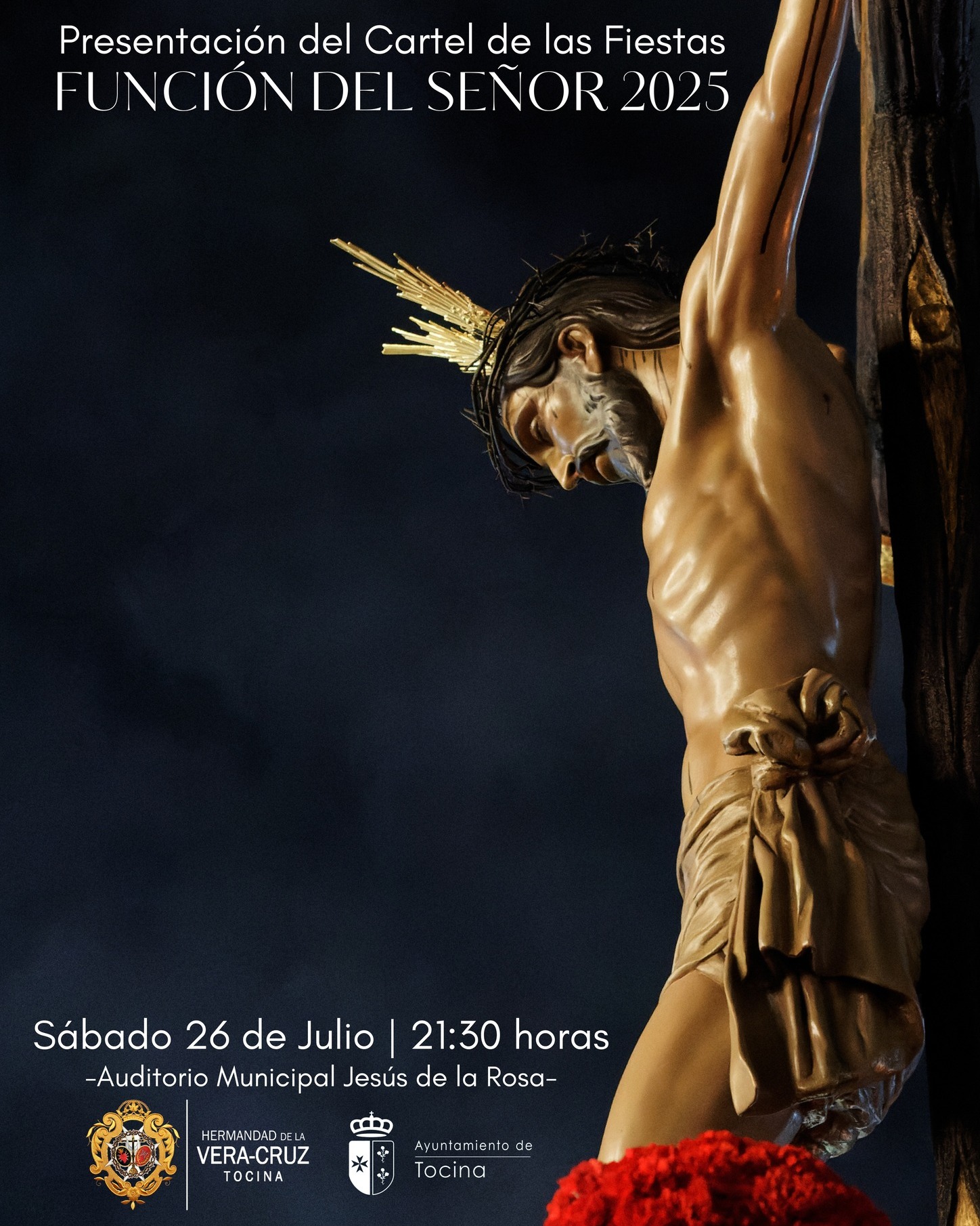 Este sábado 26 de julio se celebrará la presentación del cartel de las Fiestas de la Función del Señor 2025. Este acto organizado por la Hermandad de la Vera-Cruz tendrá lugar a las 21:30 h. en el Auditorio Jesús de la Rosa Luque, con entrada libre hasta completar aforo.