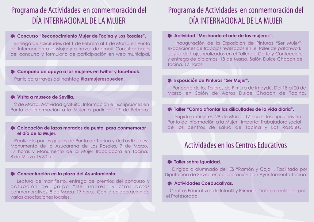 este día, la Delegación de Igualdad del Ayuntamiento de Tocina elabora un programa de actividades
