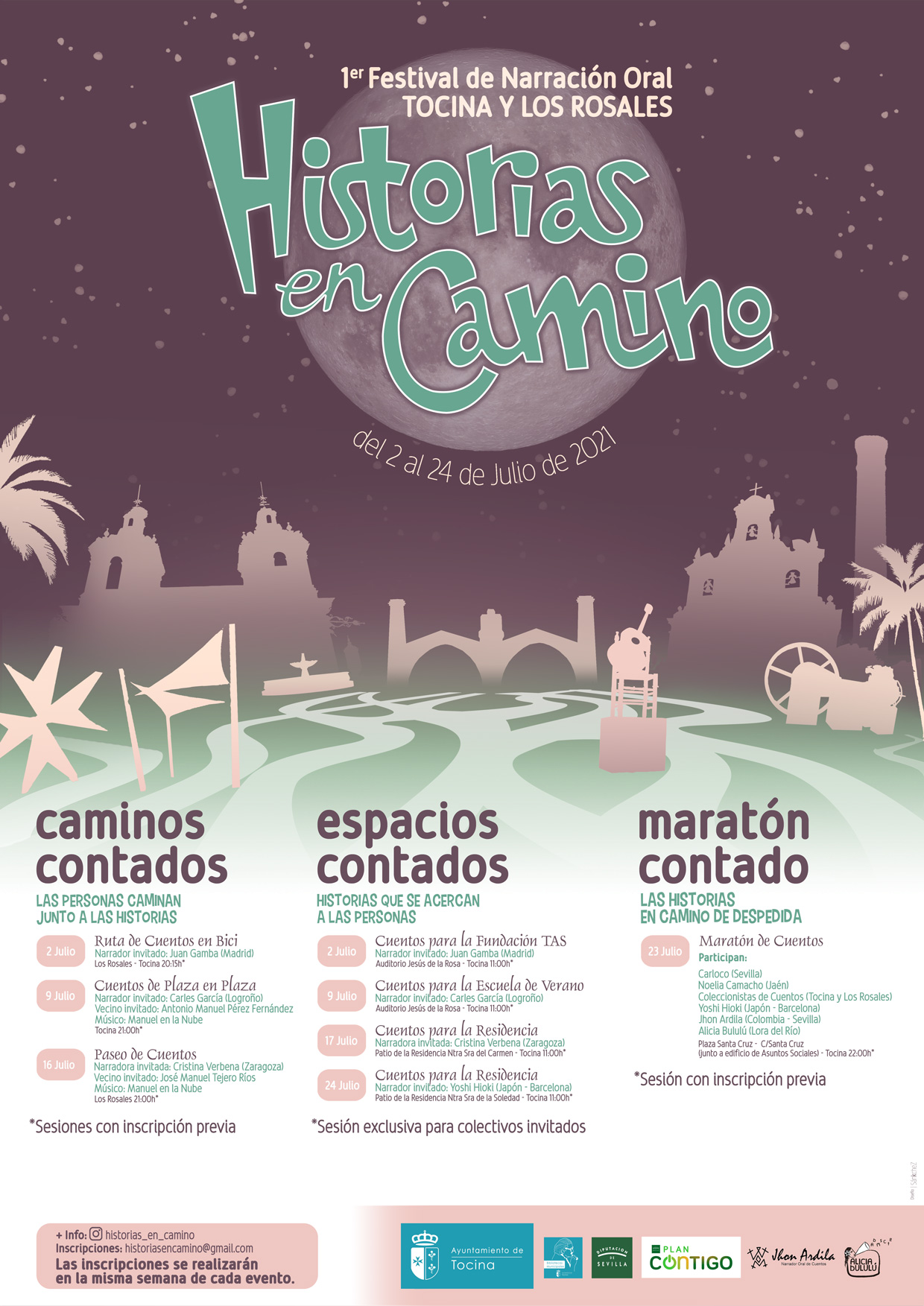 La inauguración será el día 2 de julio con una ruta ciclista por el carril que une las dos poblaciones con paradas en las que habrá narración de historias. Para ello se contará con la colaboración del Policia Local y Protección Civil; también se ofrecerán paseos contados y musicados los días 9 y 16 de julio por Tocina y Los Rosales, visitando plazas y lugares emblemáticos. Durante todo el mes se llevarán a cabo visitas a distintos lugares haciendo partícipes de este viaje a colectivos que por diversas circunstancias no pueden participar en el festival
