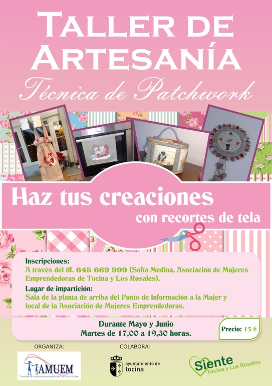 La Asociación de Mujeres Emprendedoras de Tocina y Los Rosales (AMUEM) organiza un taller de artesanía basado en la técnica de patchwork (literalmente "trabajo de parches"). Esta técnica, pese a que pueda resultar novedosa, es conocida y utilizada en España desde hace siglos, llamada aquí almazuela, y consiste básicamente, como el anglicismo nos deja presuponer, en tejer una pieza de tela uniendo fragmentos de otras telas.