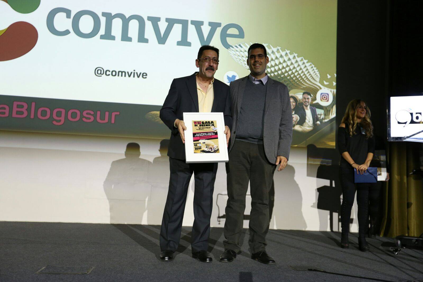 En la imagen aparece recibiendo el premio junto a Daniel Salamanca, Gerente de Comvive.