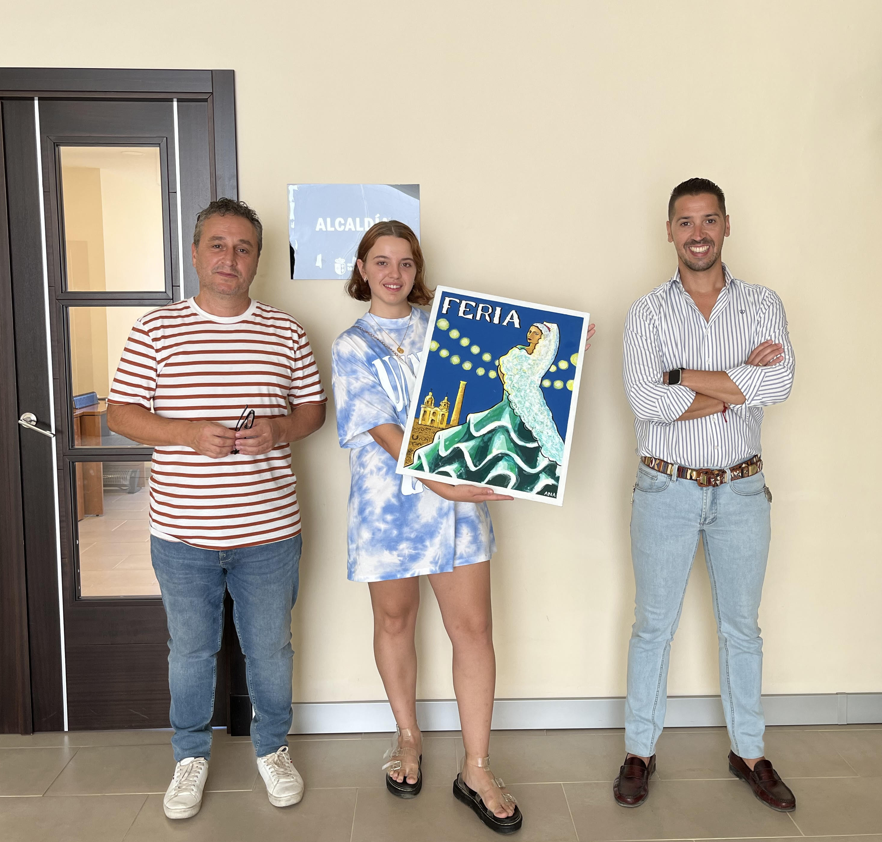 El material empleado es óleo sobre tabla, acrílico y rotuladores base alcohol para detalles. Una curiosidad para destacar es que partes del cuadro se han pintado usando las manos para conseguir texturas que no se consiguen con los pinceles. Ana ha escogido estos colores alegres para definir lo que son las fiestas del pueblo, de las cuales es muy entusiasta: “Me recuerdan a las tonalidades que podemos ver por las calles cuando llega septiembre, que es mi mes favorito del año. Decidí que el cartel debía estar inspirado en el cartelismo antiguo, debido a que estos dos años de pandemia no nos han dejado disfrutar de la Feria. Es una manera de recordar de dónde venimos, de cuántos años llevamos celebrando estas fiestas para que sigamos haciéndolo de la misma forma. Me gustaría agradecer al Ayuntamiento por haber confiado en mí y por dejar en mis manos la imagen de la Feria. Llevo desde pequeña soñando con hacer este cartel y este año por fin, en 2022, lo he conseguido. También quiero hacer una mención especial a mi familia por haberme aconsejado en todo momento y en especial a mi abuelo, por dejarme las pinturas con la que él ha recorrido mucho mundo”, ha comentado Ana.