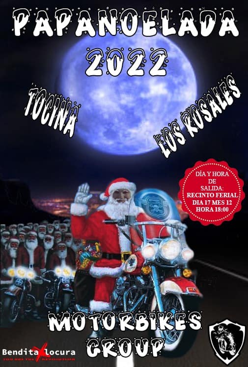 Organizada por Motorbikes Club 2017 (club motero de Tocina y Los Rosales) con la colaboración del Ayuntamiento, el 17 de diciembre se celebra la tercera edición de la papanoelada que recorrerá las calles de Tocina y Los Rosales. Empezó en plena pandemia como forma de alegrar a los más pequeños aquella triste navidad de confinamiento, y ya se va convirtiendo en un acto típico de estas fechas: vestirse de Papá o Mamá Noel, coger tu moto, independientemente de su cilindrada, y pasear con ella en grupo por las calles de nuestro municipio anunciando que ya está aquí la Navidad. La ruta comenzará a las 18 h. en el recinto ferial y finalizará en la Plaza San Fernando. En la imagen que acompaña pueden ver las calles que el club tiene previsto recorrer.