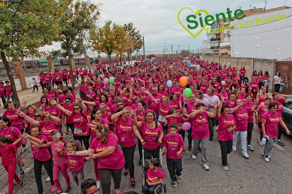 La Delegación de Igualdad vuelve a organizar este acto solidario, participativo y emotivo sin precedentes en la comarca, que volverá a teñir de rosa las calles de nuestro pueblo. El día 20 de octubre “Andarina por la Vida” volverá a colaborar económicamente con la Asociación Sevillana AMAMA, y reivindicará en un ambiente festivo las medidas para hacer frente a una enfermedad que sufren al año 26.000 mujeres en España. Una de cada ocho ciudadanas en nuestro país lo sufrirá a lo largo de su vida, siendo el tumor más frecuente en la mujer. Este año, las camisetas tendrán el mismo logo que el año pasado, para promover el reciclaje de las camisetas de ediciones anteriores. De esta manera, se quiere dar protagonismo a la lucha contra el cáncer de mama, e igualmente contribuir con el medio ambiente a través del reciclaje. No obstante, quien quiera adquirir una camiseta nueva, podrá hacerlo hasta que se agoten las existencias.