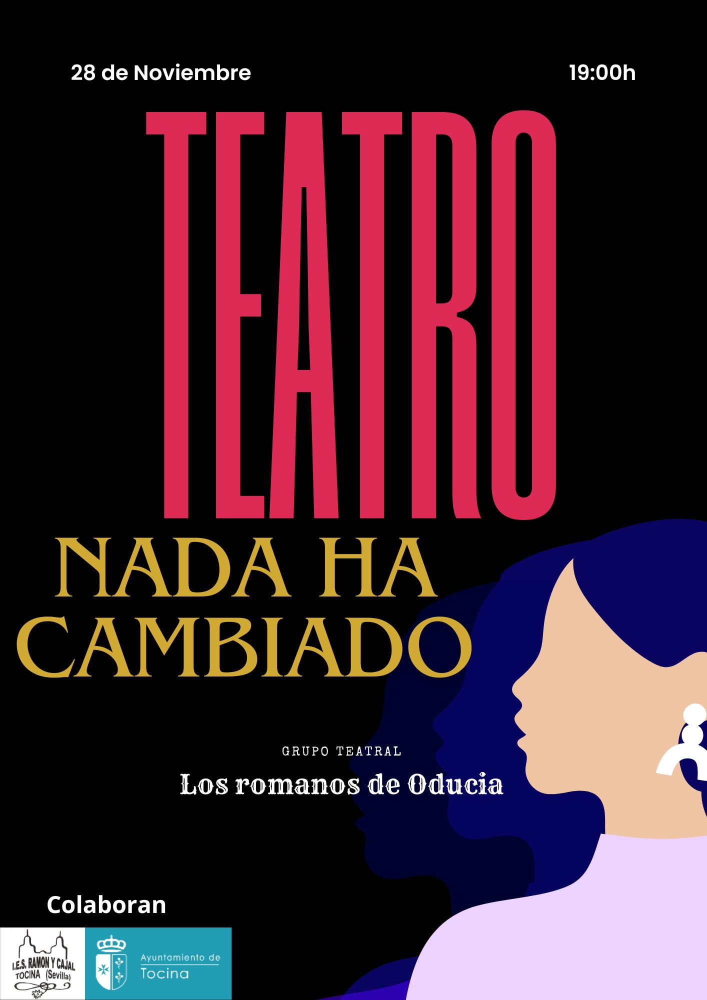 El grupo de teatro del IES Ramón y Cajal: LOS ROMANOS DE ODUCIA representarán la obra: NADA HA CAMBIADO. Para hablarnos de un tema tan actual desgraciadamente, como es la violencia de género. Será el 28 de noviembre a las 19:00 horas, en el Auditorio “Jesús de la Rosa”