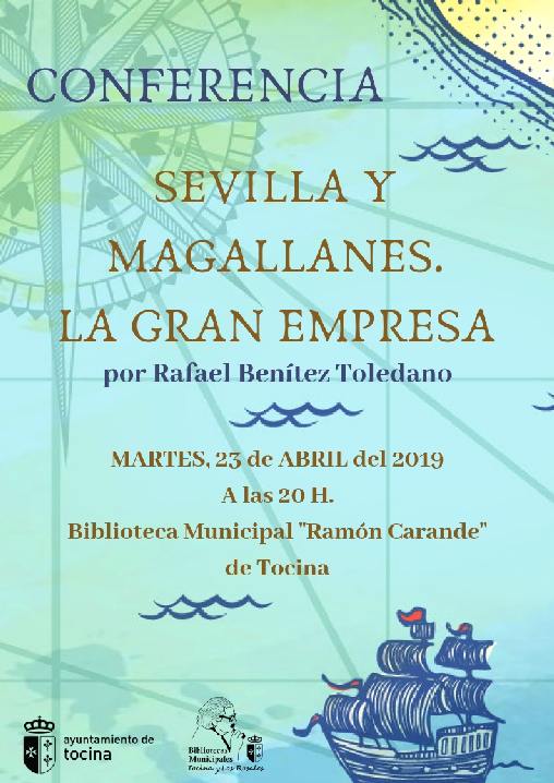 El acto de presentación, que tendrá lugar hoy, 23 de abril, a las 20 h. en la Biblioteca Municipal Ramón Carande de Tocina, contará con la presencia del archivero municipal de Carmona, José María Carmona y del escritor Rafael Benítez Toledano que realizará la conferencia “Sevilla y Magallanes, la gran empresa”.
