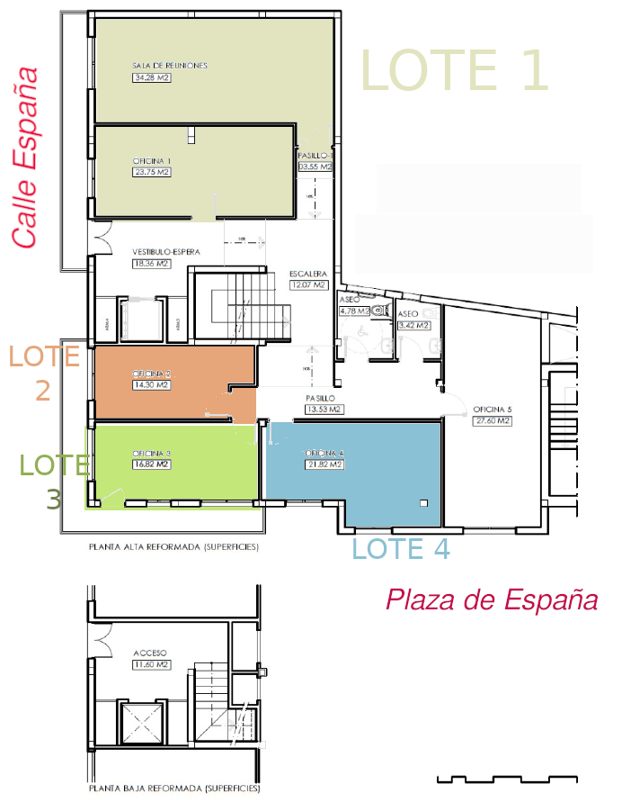LOTE 3: OFICINA 3. Uso: Actividades profesionales o de servicios compatibles con el espacio. No comercio menor. Canon anual mínimo: 1.227,51