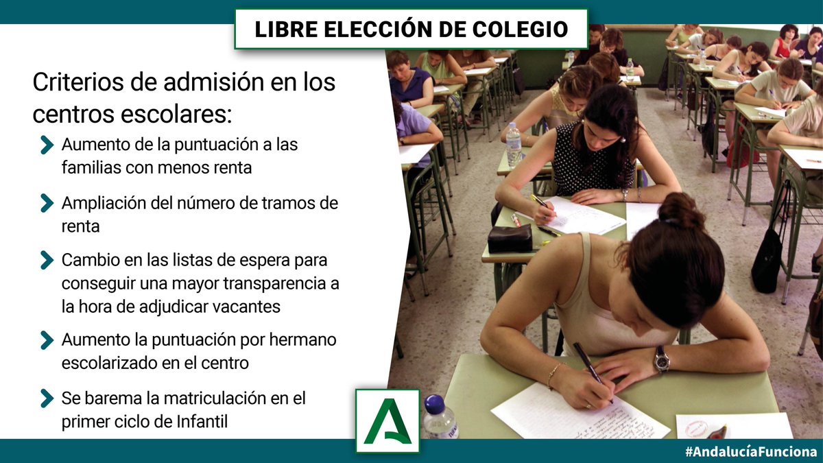Durante todo el mes de marzo permanecerá abierto en Andalucía el plazo para la presentación de solicitudes de admisión correspondientes al curso escolar 2021/22 en la red de centros sostenidos con fondos públicos. Se inicia de este modo el proceso de escolarización en el que participan todos los niños y niñas que se incorporan por primera vez al sistema educativo, tanto en centros públicos como privados concertados, así como el alumnado que cambie de centro escolar.