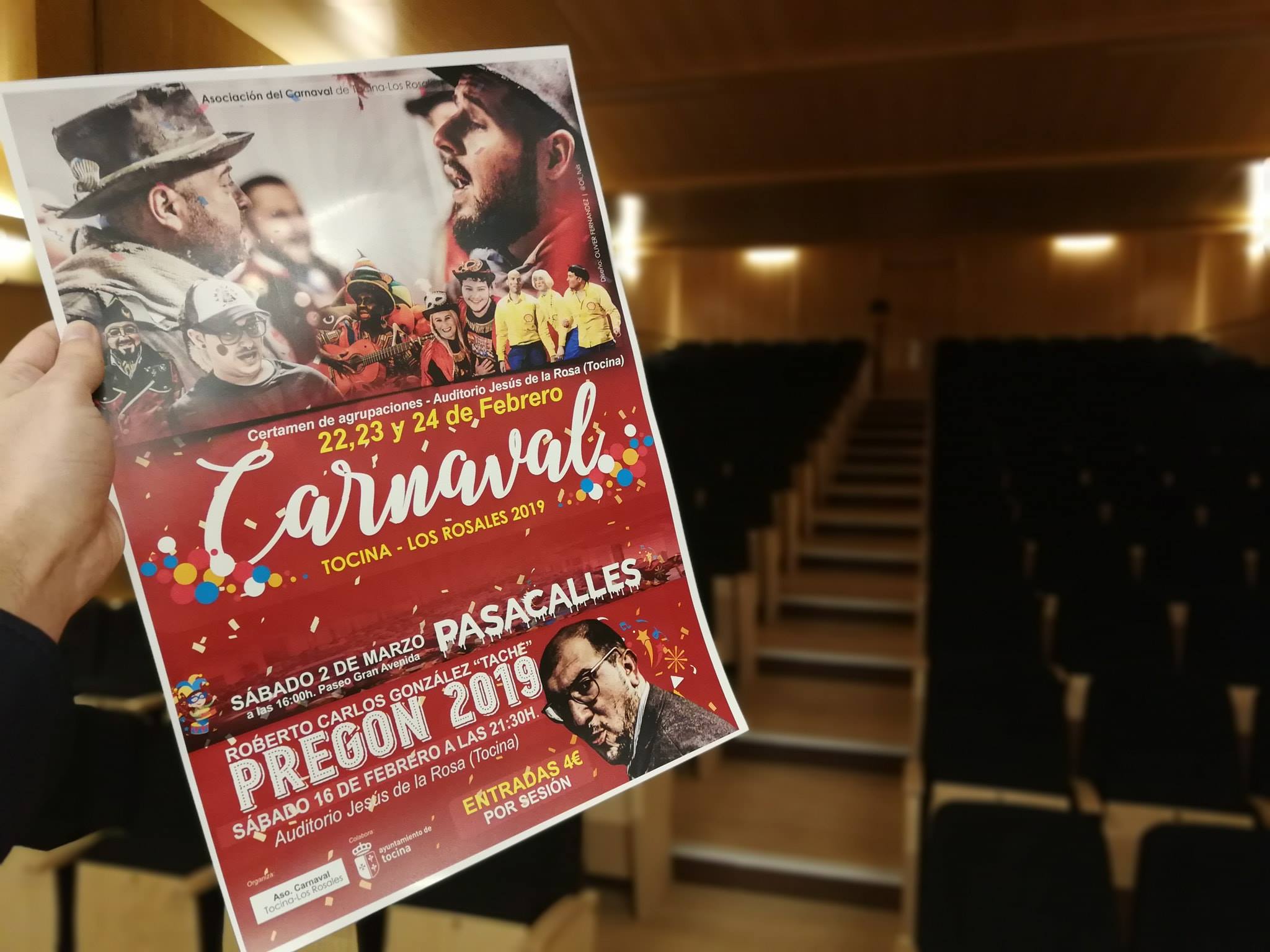Desde hoy, y hasta agotar localidades, están a la venta las entradas para los pases de las agrupaciones carnavalescas que participarán en el certamen de carnaval de Tocina y Los Rosales 2019. Según informa la Asociación de Carnaval de Tocina y Los Rosales, se pueden adquirir al precio de 4 euros en Shaman Tattoo (Avda. de Sevilla 35B), agencia de viajes Vente de Vacaciones (c/ Rey Juan Carlos I, 10) y Grupo Casa Ventura (c/ Benito Pérez Galdós, 26). El certamen tendrá lugar los días 22 y 23 de febrero (a las 20:30 h.) y el 24 de febrero a partir de as 17 h., por priemra vez en el Auditorio Jeśus de la Rosa Luque. Para el viernes se anuncia la presencia, entre otras agrupaciones, de la comparsa local semifinalista en Cádiz el pasado año, que este año participa con el nombre de A Base de Palos. Antes, el 16 de febrero (20:30 h.) tendrá lugar también en el Auditorio el pregón de carnaval, que este año realizará Roberto Carlos González.
