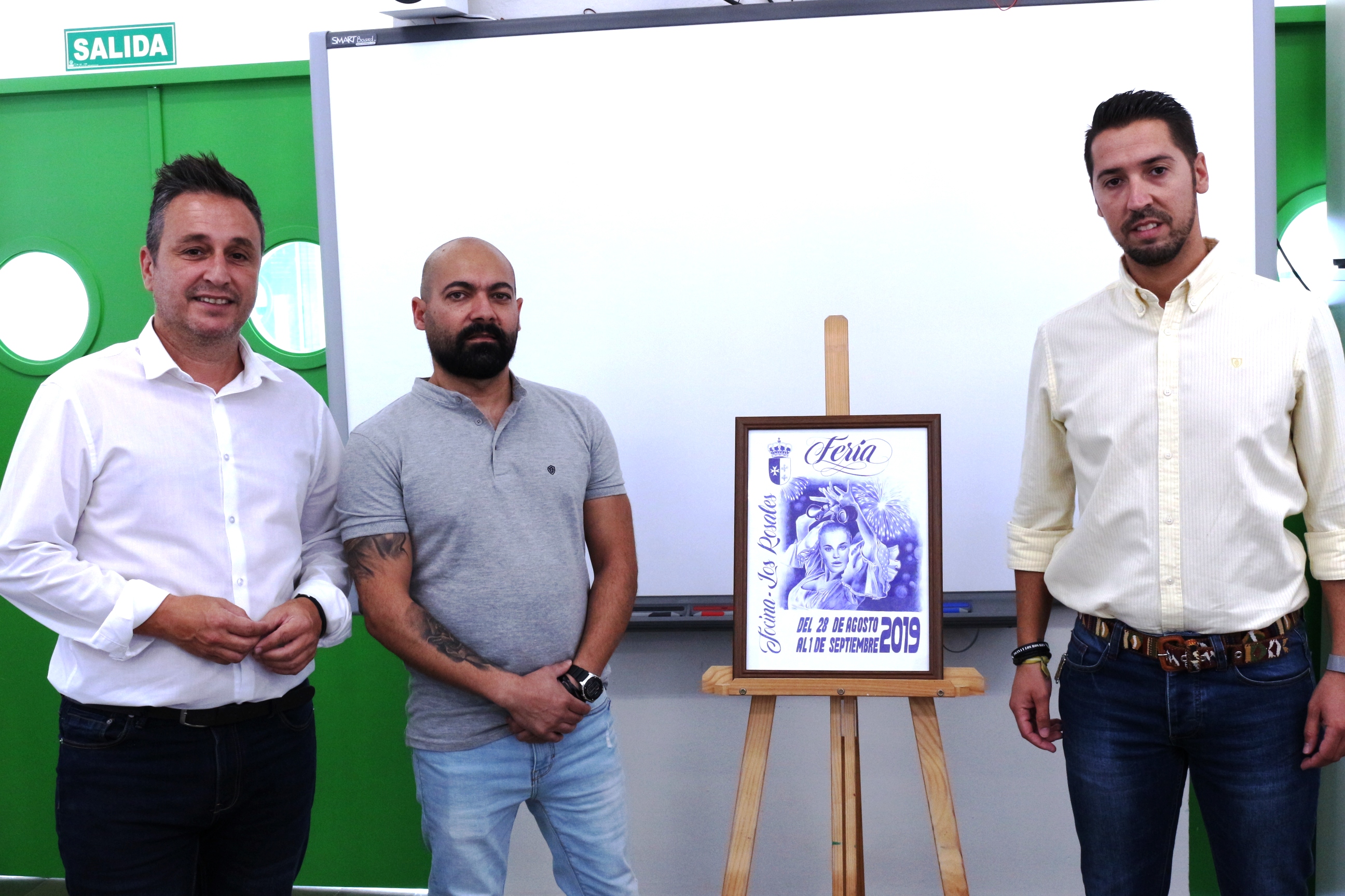 En el día de hoy se ha presentado en las instalaciones municipales del Centro Cívico Blas Infante el cartel de Feria 2019, con la presencia del alcalde Francisco Calvo, el concejal de Festejos Andrés Aranda y el autor del trabajo. La obra ha sido realizada a bolígrafo por José Núñez Fernández, con un trabajo de máxima precisión donde no hay opción al más pequeño fallo, pues en esta técnica es complicado disimular un error en el trazado. José es pintor vocacional, trabajando con el óleo, el carboncillo, el lápiz y el bolígrafo. Vecino de Tocina, posee un estudio de tatuaje en Carmona y ha elegido a una mujer con traje de gitana como motivo fundamental del cartel, flanqueada por los fuegos artificiales del domingo de feria. José, según manifiesta, se ha decantado por la mujer porque suele darle colorido a la feria con sus trajes, más que los hombres, que no suelen utilizar traje típico para estas fiestas.