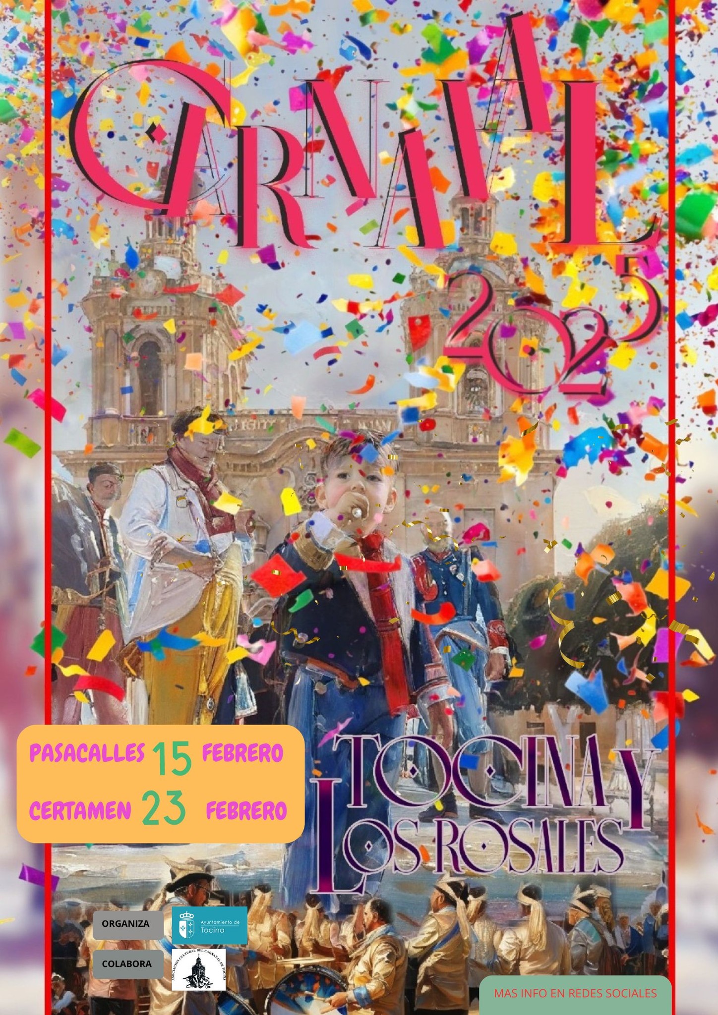 Este sábado, 15 de febrero, a partir de las 16 h. tendrá lugar el tradicional pasacalles de carnaval, organizado por el Ayuntamiento de Tocina en colaboración con la Asociación de Carnaval de Tocina y Los Rosales.