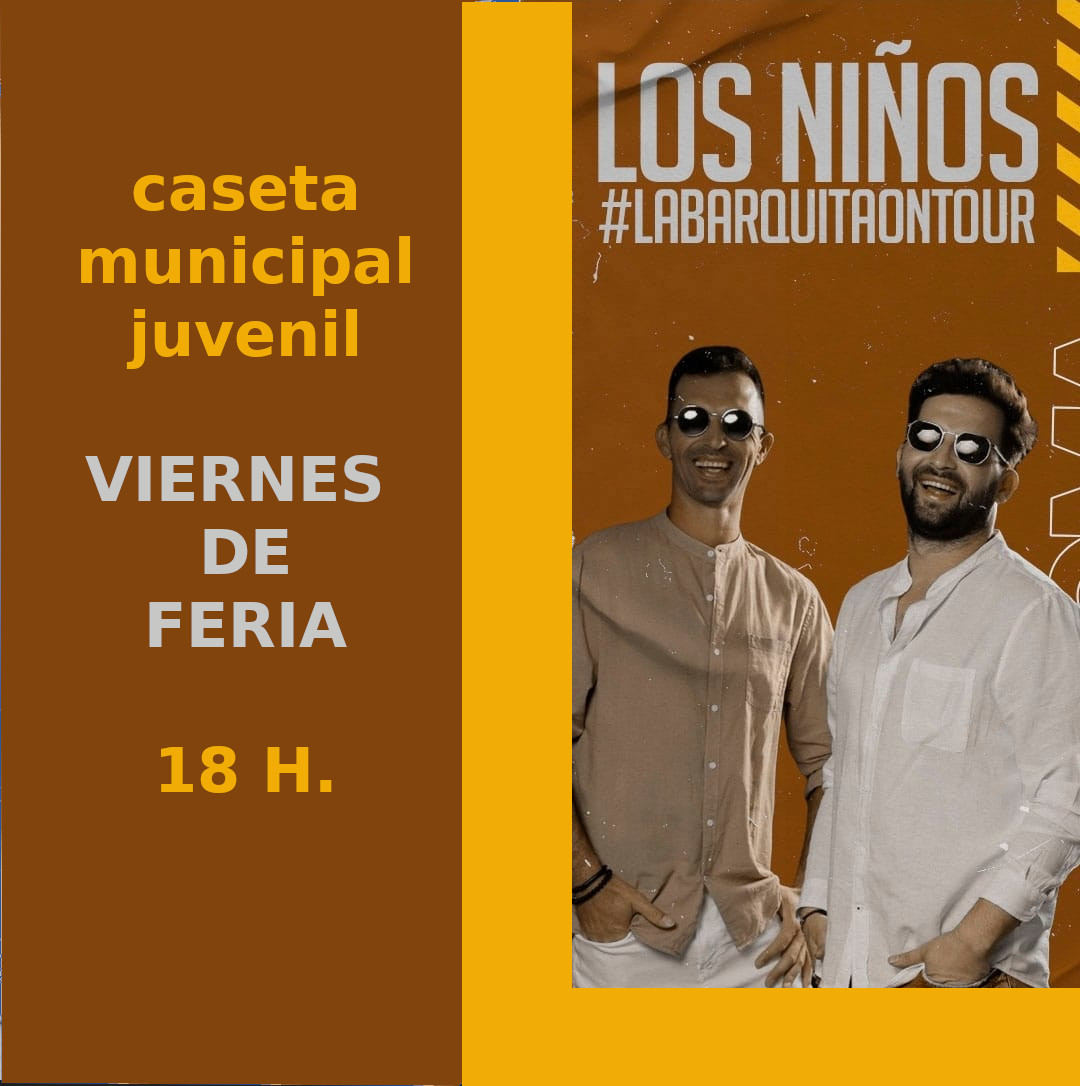 A las 18 h. actuará el grupo de rumbas y sevillanas Los niños #BarquitaOnTour en la caseta municipal joven.