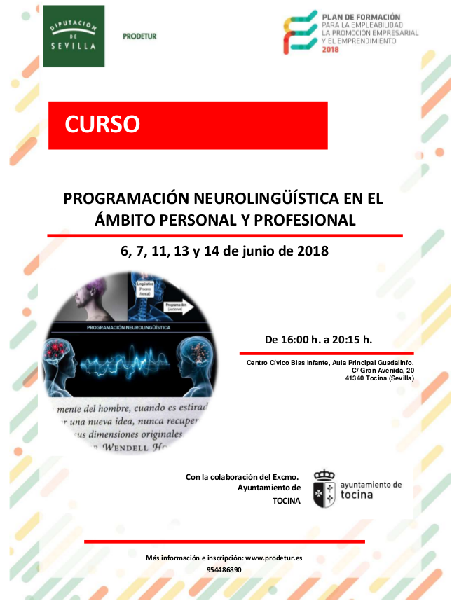 El centro Guadalinfo de Tocina y Los Rosales acoge este curso, impartido por Prodetur, que tiene como objetivo enseñar a utilizar los conocimientos de programación neurolingúística. Está destinado tanto a personas desempleadas como a emprendedoras, trabajadores/as por cuenta propia y por cuenta ajena.