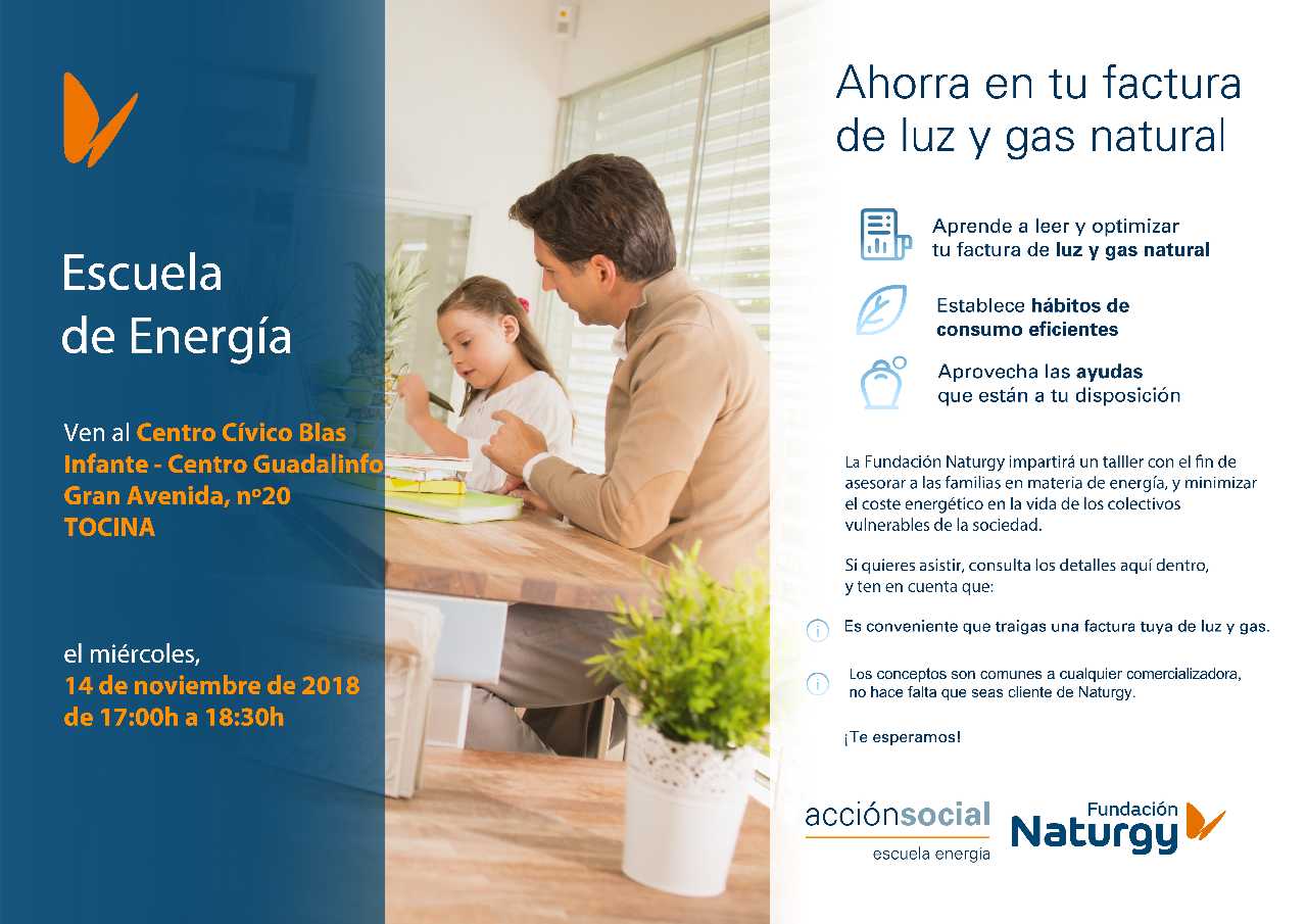 Impartidas por Fundación Naturgy, se pretende que las personas participantes conozcan el tipo de contrato que tienen en la actualidad suscrito o la modalidad que les resultaría más beneficiosa en cada caso. Se estudiarán los datos relevantes de la factura: la potencia, la energía consumida, etc. También se verán formas de optimizar la factura (discriminaciones horarias y otras medidas de ahorro energético). Por último se explicará en qué consiste el bono social y cuándo y cómo se puede solicitar. Para acudir a estas sesiones pueden inscribirse por teléfono en el centro Guadalinfo (954741881). Es conveniente acudir a las sesiones con una factura eléctrica.