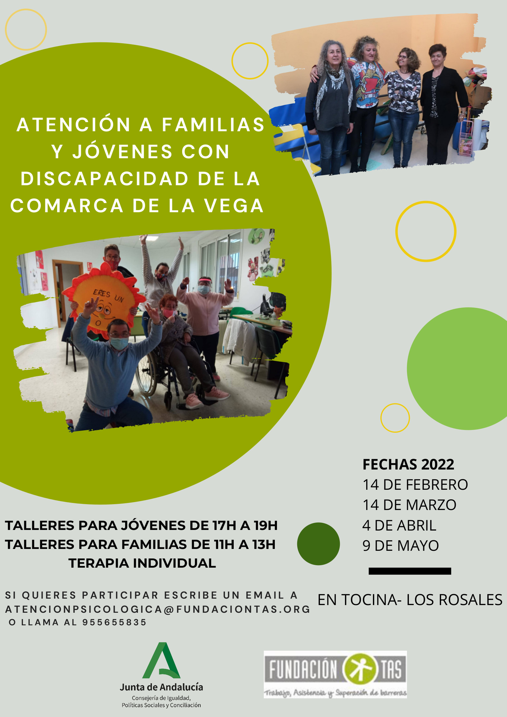 Para participar o recibir más información pueden llamar al número 955655835 o mandar un correo a atencionpsicologica@fuandaciontas.org.