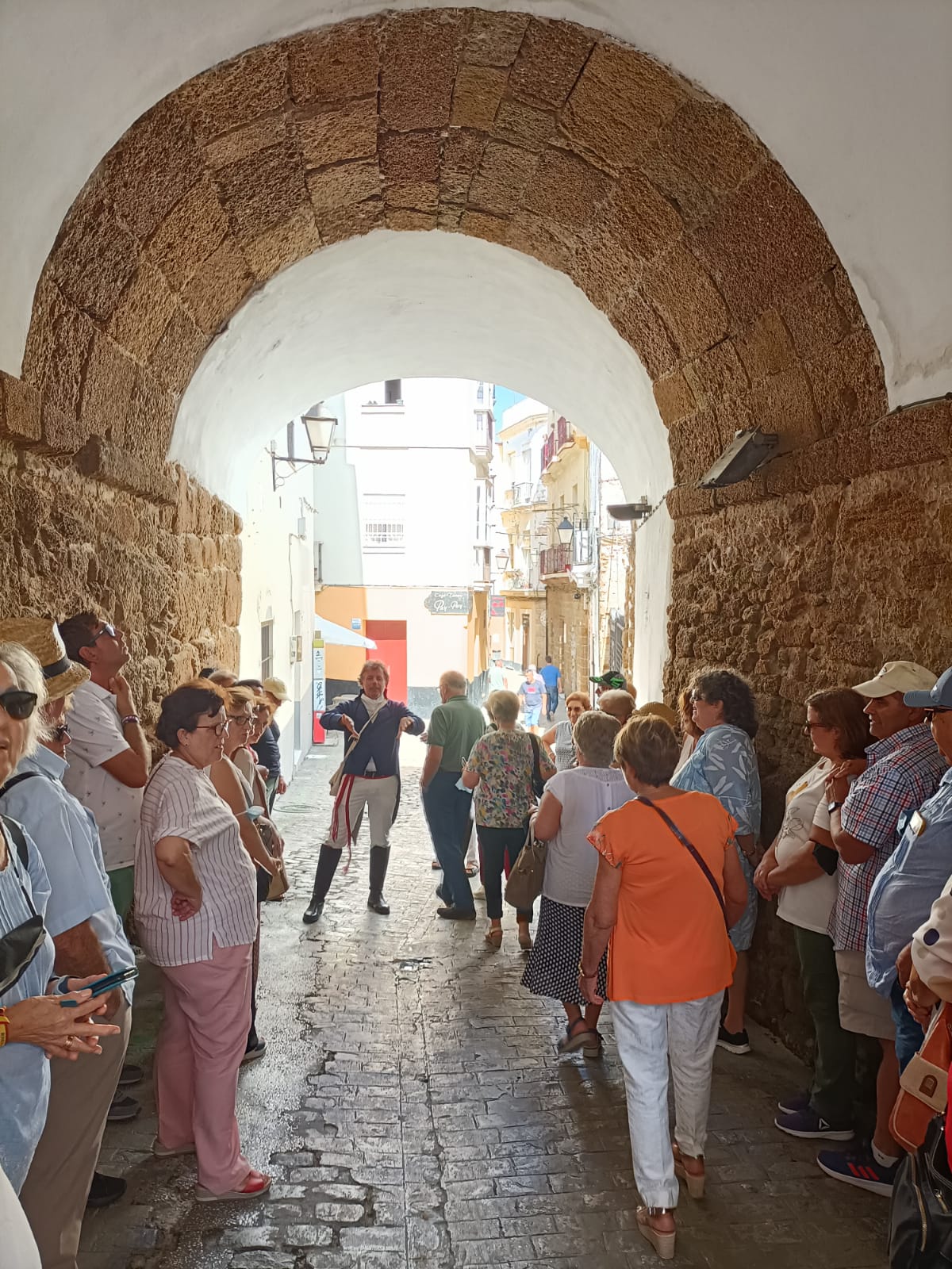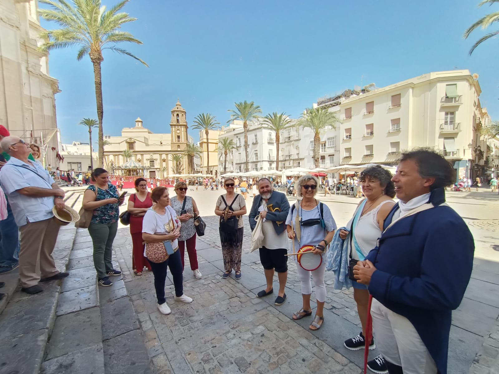 Se trata de una visita cultural teatralizada titulada “Cádiz de pe a la pa: de los fenicios a la Pepa”, viaje cultural que aúna conocimiento de la ciudad, rigor histórico y diversión. En esta visita teatralizada se recorrieron los 3000 años de historia de la ciudad a través de los principales hechos y momentos históricos en los que Cádiz tuvo especial protagonismo, tanto nacional como internacional: fundación fenicia, segundo viaje de Colón, batalla de Trafalgar, firma de “La Pepa”, etc. Las personas participantes pudieron recorrer el centro de Cádiz a través de dos personajes sacados de la historia que hicieron de guías, contando historias y representando escenas muy divertidas.