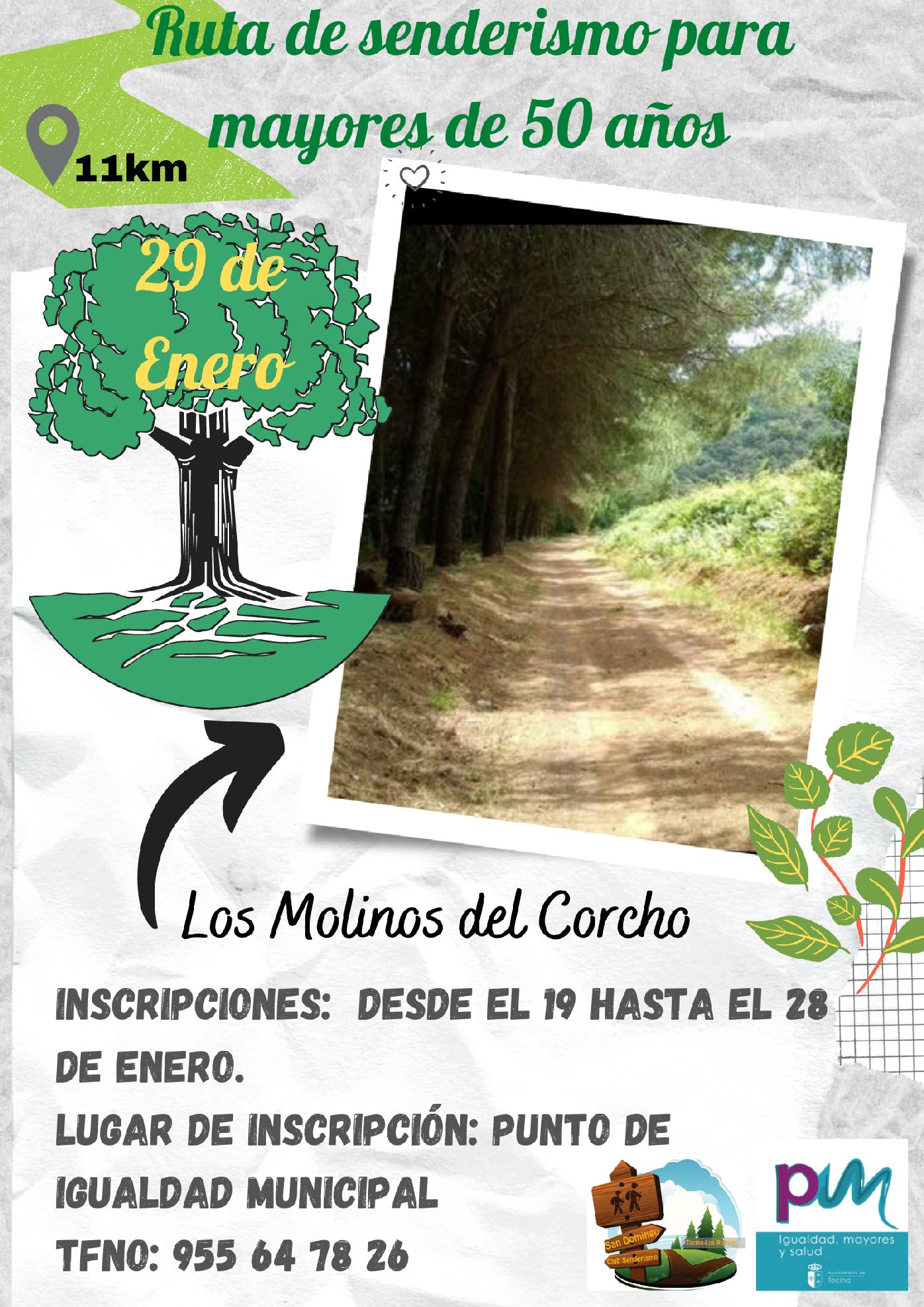 La Delegación de Mayores del Ayuntamiento de Tocina organiza para el día 29 de enero una ruta de senderismo dentro del Programa de Envejecimiento Activo subvencionado por la Diputación de Sevilla.
